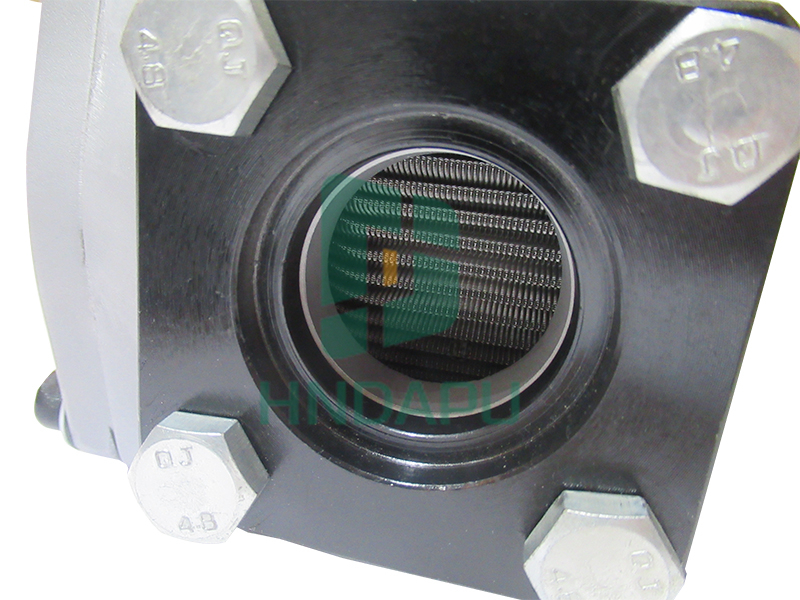 (2)帶電發訊器:當濾芯被污染物堵塞到出油口的真空度為-0.018MPa時,發訊器內的微動開關動作,發出開關信號,指示應清洗或更換濾芯,如此時又不能馬上停機或無人來更換濾芯,設在過濾器蓋內的旁通閥會自動開啟(開啟壓力為:真空度-0.02MPa);